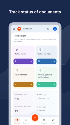 • Track Status: Easily track your signature requests, organize documents, and perform actions like sending reminders, revoking, reassigning, and declining.