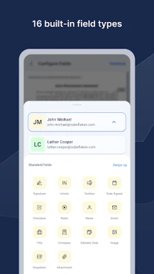 • Configure complex workflows with multiple recipients and various roles (Signer, reviewer, in-person signer)