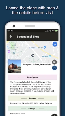 Apart from this, Brussels Travel & Explore guides you Why, When and How to visit various places in Brussels with precise location on the detailed Map. There are two ways to explore this app - Category view and EduBank favorite places view. Pin your destinations and get the routes on the Map. Not only this, you can see exactly how the places look like with Street View integrated in this app. The app also has a feature to Rate and write Review/Experience regarding entity(s) through Login. Your Travel experience and rating will help the user community.