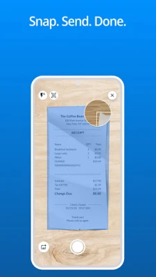 * Capture: Open the camera and hover over a receipt - auto-capture and border cropping do the work for you.