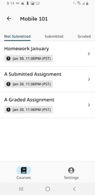 Note: For V1 of the app, you will be directed to our mobile website for any advanced functionality, including viewing feedback and submitting timed, programming, or online assignments. Stay tuned for future updates that will allow you to do even more with our mobile app!