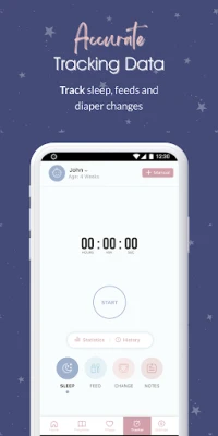 • Sleep, feed, and diaper tracker to record your baby's daily habits
