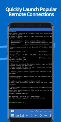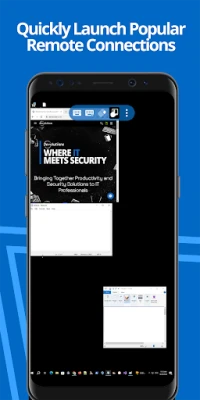 Once configured, connections to your remote servers, virtual machines, and other workstations can be easily launched using a single tap.