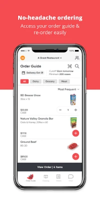 Our mobile app lets you search our complete product catalog, manage and update your ordering guide, and buy what you need at the moment you need it. It’s part of our commitment to giving you an ordering experience you’ll love.