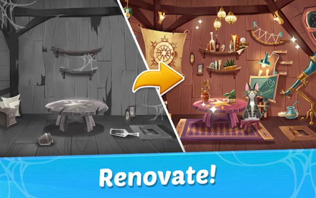 Welcome to Witch & Cats! Swipe blocks, solve match-3 puzzle and help Witch Rosy decorate her castle. An exciting adventure is calling you!